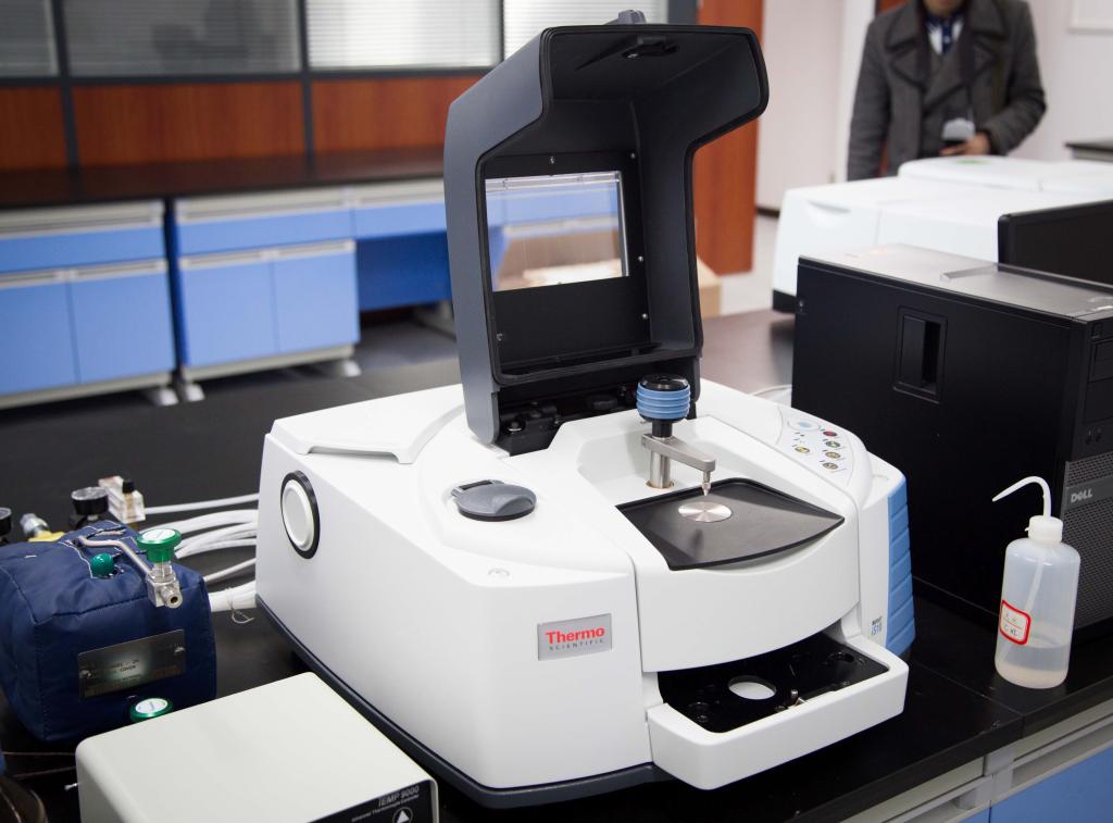 该仪器主要用于研究物质的分子振动吸收光谱,广泛应用于化学、药物学、材料科学、环境科学、石油化工、精细化工、食品工程、刑侦司法等科学领域。可用于高分子材料(塑料、橡胶、纤维、粘合剂及涂料等)、复合或填充高分子材料、天然纤维、合成纤维、珠宝、玉石等材料的成分研究及表面结构分析,在有机化学、无机化学、矿物、合成化学、催化过过程的检测等领域有广泛的应用,具有对微区(微米级)可见光下观察和红外测量功能,可以同时获得样品高质量的可见光图像和红外光谱图,是有机化合物、无机化合物结构分析、定量的重要手段,可对固态、液态、气态的物质进行测试,FTIR图谱既具有指纹图谱的特征,又能提供化合物结构中官能团的结构信息。